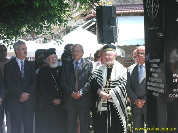 At the end of the service we walked to the “Square of the Hebrew Martyrs” where a memorial had been erected a few years ago. Here we had a short ceremony with a very touching poem was recited by a Jewish poet from France. The city’s brass band played the Greek and Israeli anthems.
