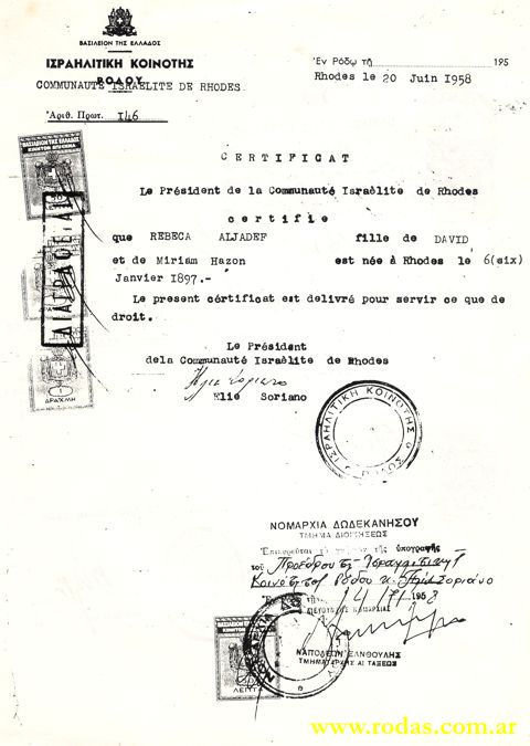 Certificado de Nacimiento de Rebeca Alhadeff de Benevniste. Anverso y reverso. (Marcelo Benveniste)