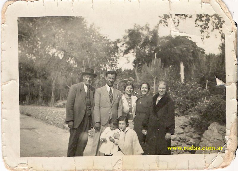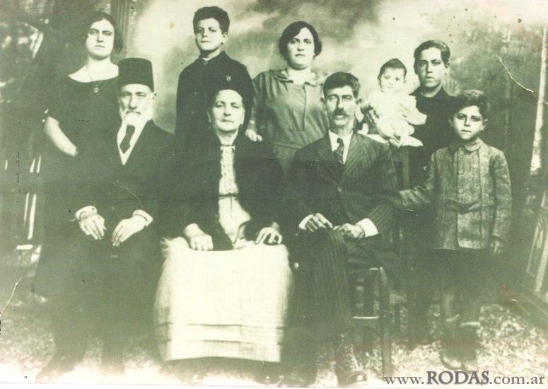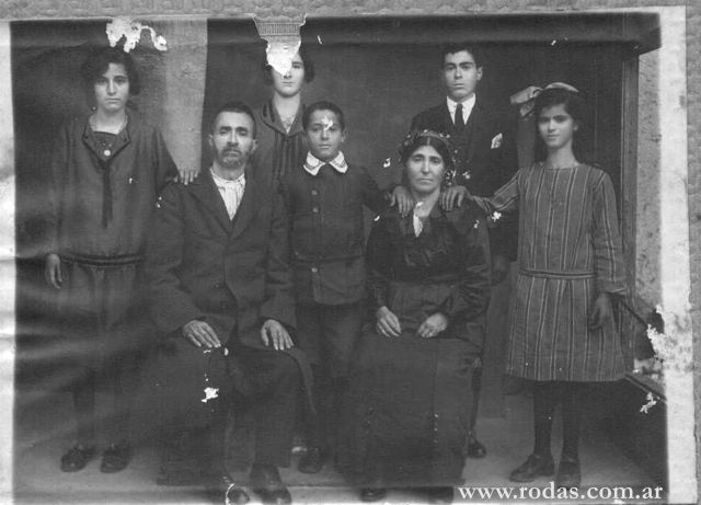 5/12/1922. Familia Berro: Mordocheo y Esther Israel (adelante) con sus hijos (de izqueirda a derecha) Angel, Leonor (Luna), Giuseppo, Jaco y Diana. (Marcelo Benveniste). |