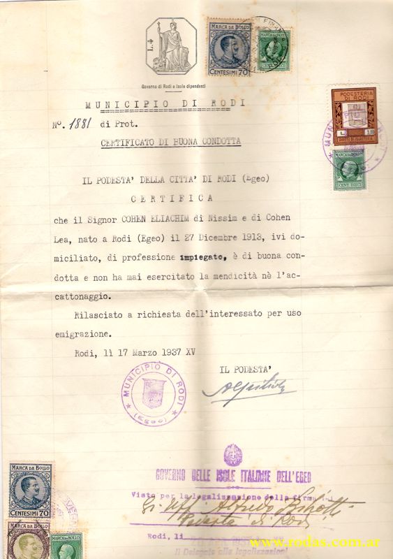 Certificado de buena conducta de Eliakim Cohen (Nora Cohen)