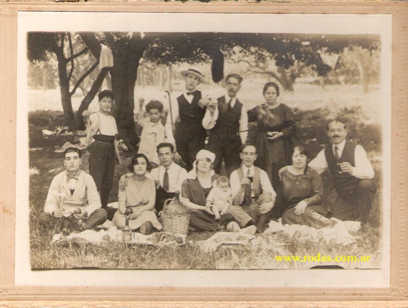 Familia Hana de picnic en la que aparece Raquel Cohen de Hana, con toda su familia política (Nora Cohen) |