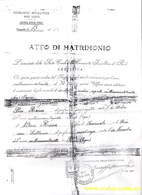 1930. Acta de Matrimonio de Guedalia Soriano y Rosa Notrica. Anverso y reverso. ( Victor Soriano)