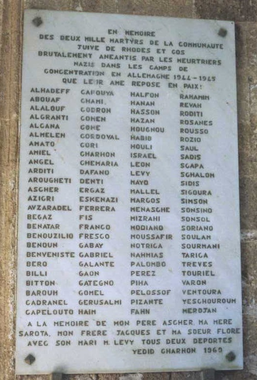 ist of the Jewish martyrs of Rhodes murdered in the Concentration camps. [link]